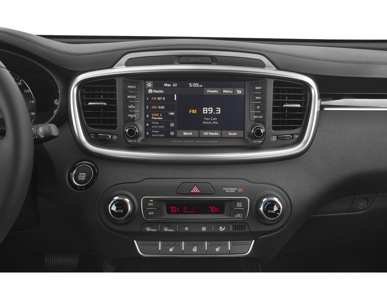 - Radio: UVO eServices w/Premium Navigation -inc: 8" touch-screen display, AM/FM radio, MP3, Android Auto, Apple CarPlay, SiriusXM, voice recognition, rear-camera display, USB/auxiliary input jacks and Bluetooth wireless technology