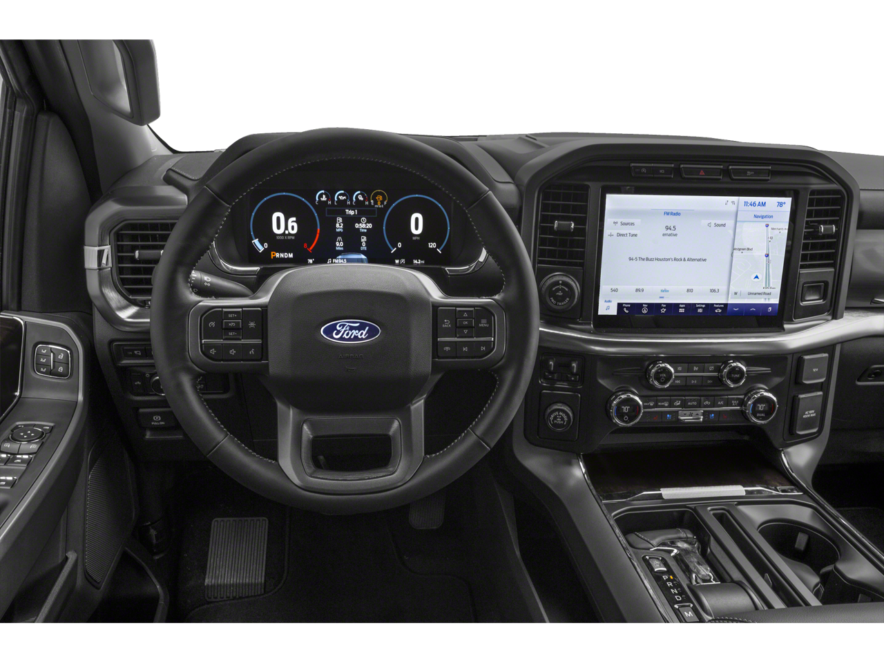 For towing and hauling, the Trailer Tow Package with an Integrated Trailer Brake Controller and Pro Trailer Backup Assist makes light work of even the most challenging tasks. The Black/Medium Dark Slate leather-trimmed interior offers unparalleled comfort, with heated and ventilated 10-way power front seats and a convenient interior work surface.