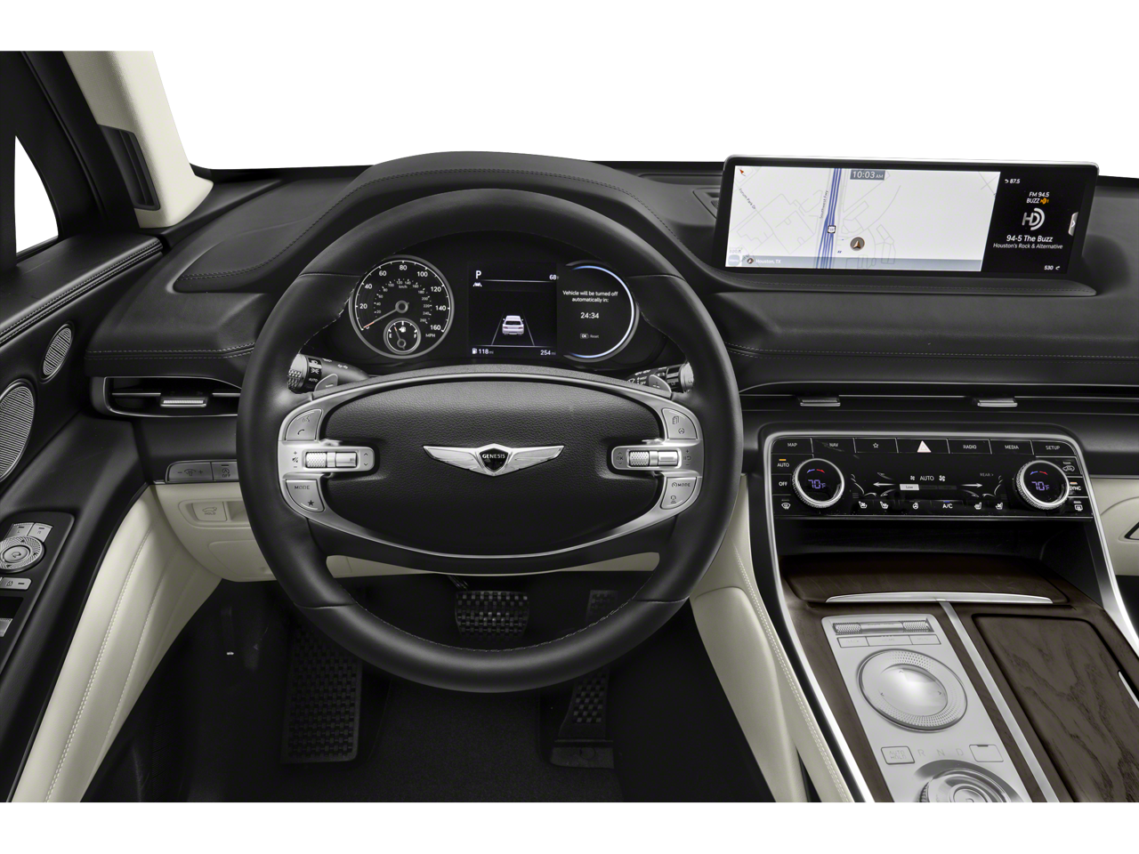- Radio: AM/FM/SiriusXM/HD Audio System -inc: 12 speakers, 6-channel internal amplifier, integrated navigation, 14.5" HD LCD screen, Apple CarPlay and Android Auto, Bluetooth hands-free phone system w/audio streaming, steering wheel controls, USB and Genesis Connected Services