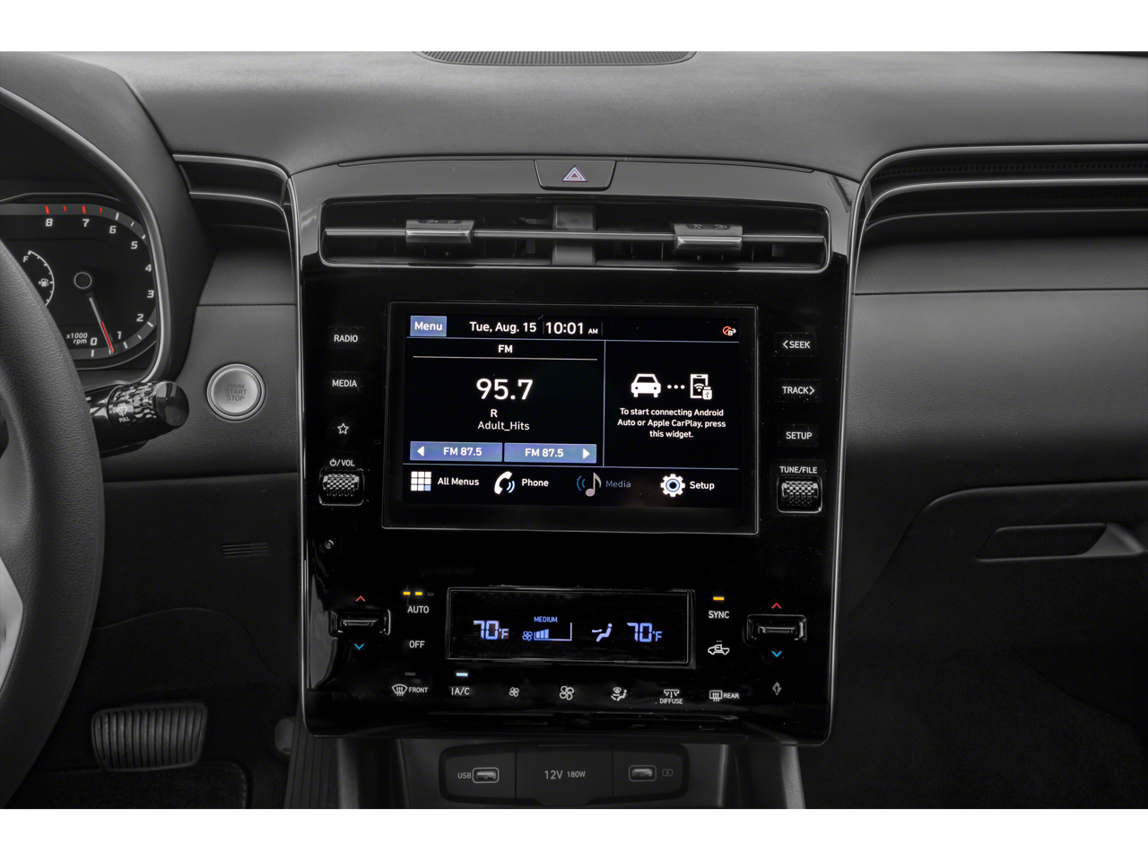 - Radio: AM/FM/HD Audio System -inc: 8" color touchscreen, 6 speakers, SiriusXM satellite radio w/3-month trial subscription, Bluelink + connected car system, Bluetooth® hands-free w/wireless audio streaming, wired Apple CarPlay and Android Auto and USB connectivity